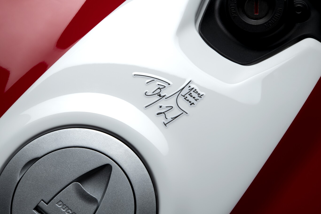 Ducati creó una moto que conmemora el 20 aniversario de su primera victoria en el Mundial de Superbike con el australiano Troy Bayliss como piloto.