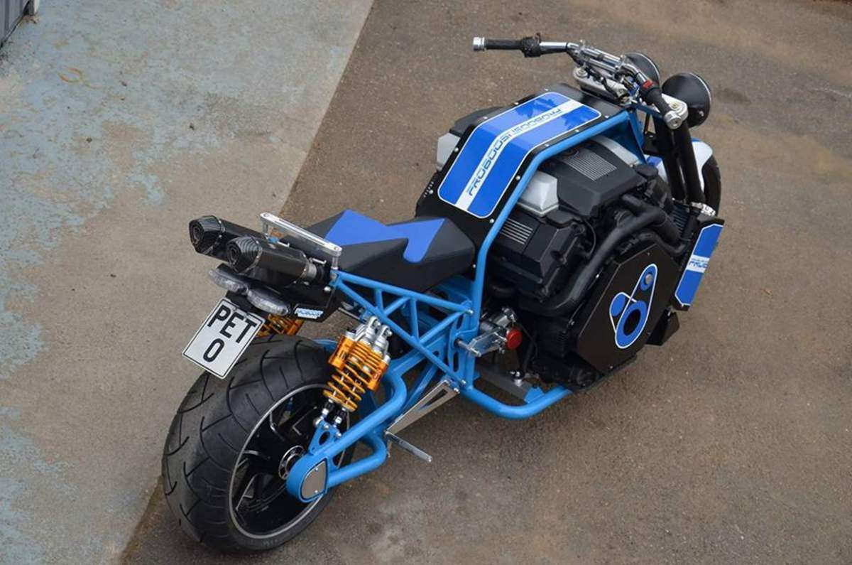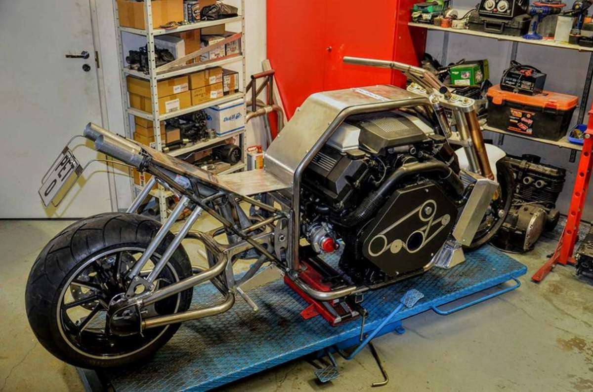 Este prototipo es un interesante trabajo de combinación artesanal, pero con escalofriante poder para controlar. La moto lleva un motor V8 procedente de un BMW de 4.0 litros que utilizan los autos 540i e39 y 740i e38.