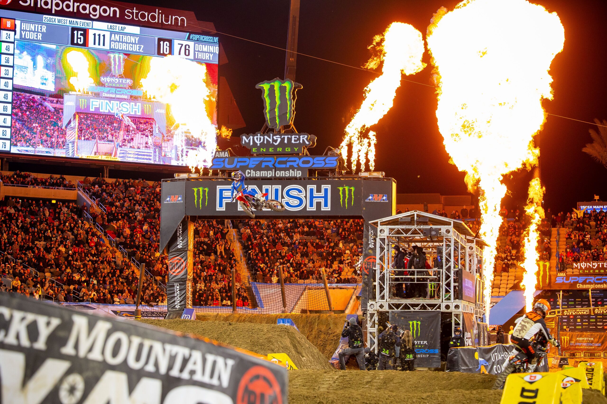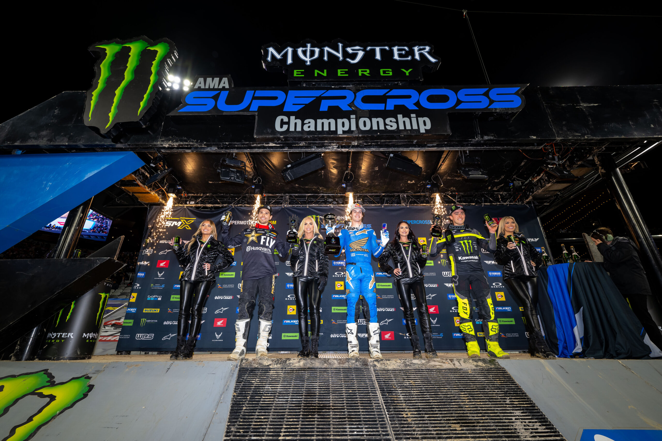 Dylan Ferrandis (Yamaha) y Jason Anderson (Kawasaki) completaron el podio de la clase 450SX en San Diego.
