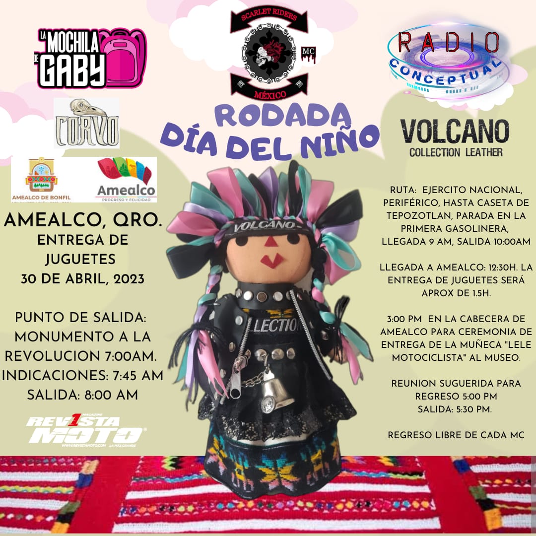La Mochila de Gaby, junto con el motoclub Scarlet Riders y la Productora Radio Conceptual convocan a una rodada por el día del niño. Uniendo a bikers para realizar una buena obra para los niños de escasos recursos.