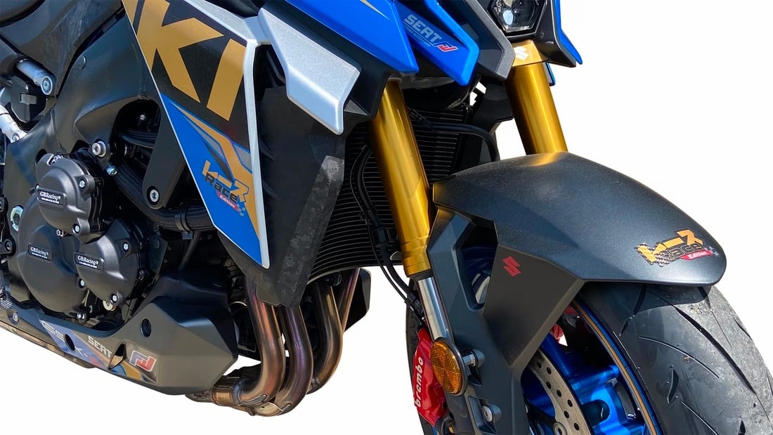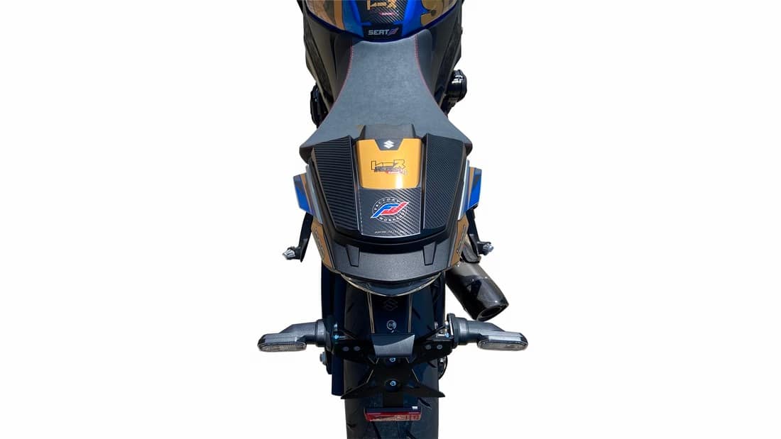 Entre la novedades que le dan un look de competencia, la GSX-S 1000 presenta un capó de alerón corto sobre los faros, un asiento tipo “Race” con cubierta para la almohadilla del pasajero, así como un silenciador de Akrapovic para resaltar el rugido.