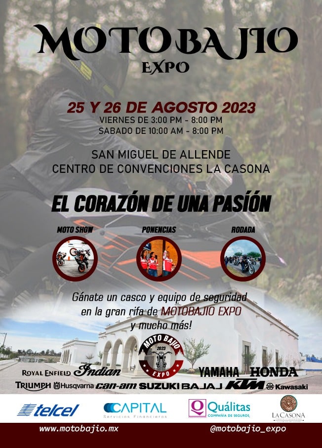 Cada vez está más cerca la primera gran edición la MotoBajío Expo 2023, que se realizará el 25 y 26 de agosto en el Centro de Convenciones La Casona, en San Miguel de Allende, Guanajuato. Entre sus sorpresas, está la oportunidad de participar en una gran rifa.