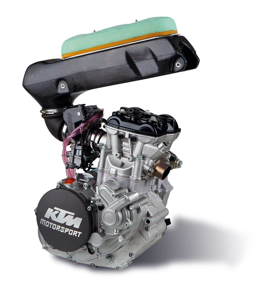 Cuenta con componentes de última generación que han sido desarrollados en las condiciones extremas del desierto y en los terrenos más pedregosos. Con un peso mínimo, una ergonomía cómoda y una facilidad de conducción en el centro del diseño, la suspensión WP XACT PRO COMPONENTS ofrece un tacto preciso, un rendimiento consistente, y la importante tracción, hacen que esté construida para absorber los golpes a alta velocidad y todo lo que el terreno le depare. El propulsor de 450 cc es ligero pero duradero, con una entrega de potencia optimizada gracias a su vanguardista sistema de gestión Keihin y a los mapas de la ECU que se han perfeccionado para las condiciones de las carreras de rally. La transmisión Pankl es la misma que utiliza el equipo Red Bull KTM Factory Racing, al igual que el excepcional bastidor de acero al cromo-molibdeno.