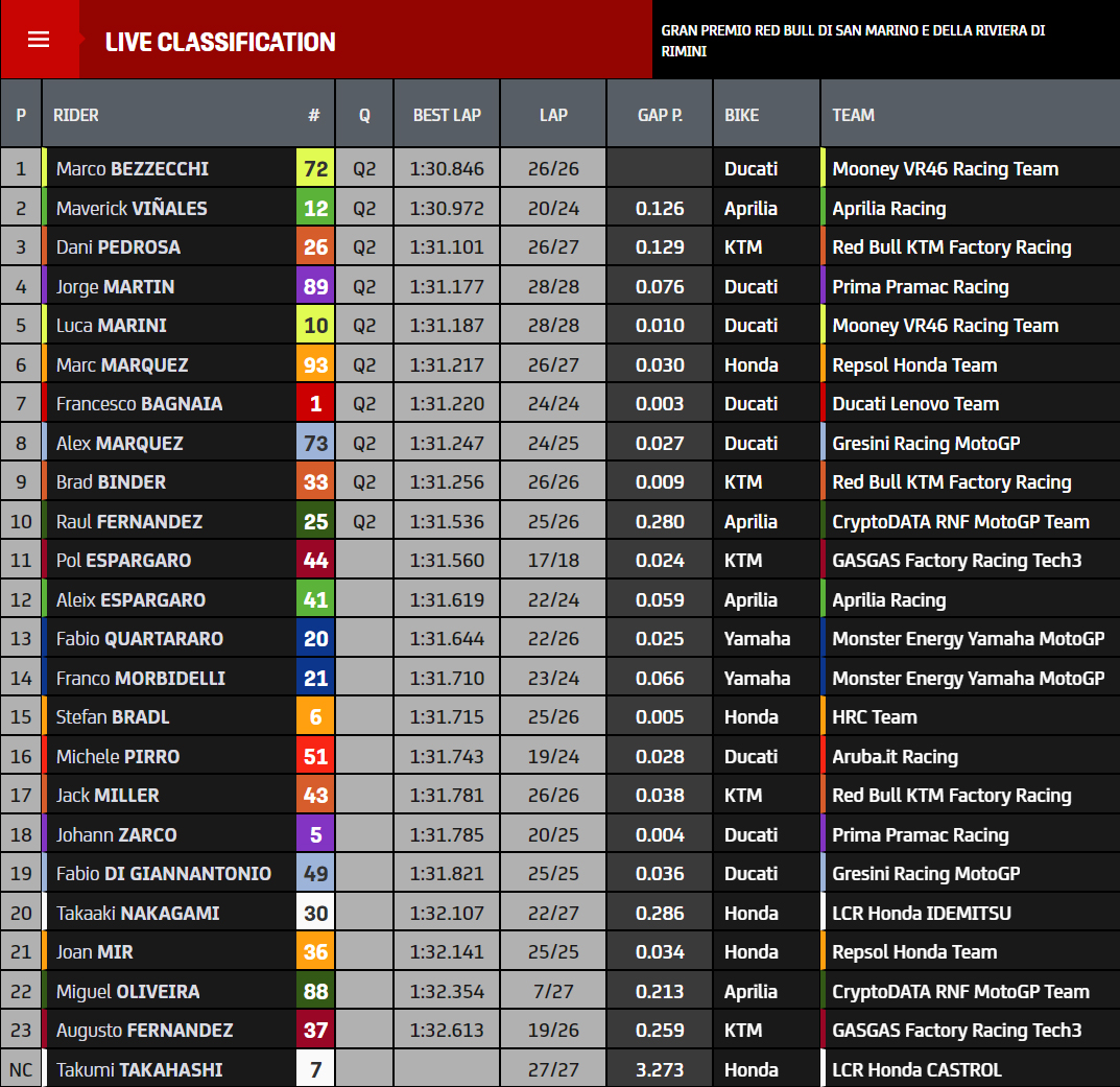 Bezzecchi ‘vuela’ en Misano, Pedrosa brilla y Marc Márquez se mete en Q2 a su rueda