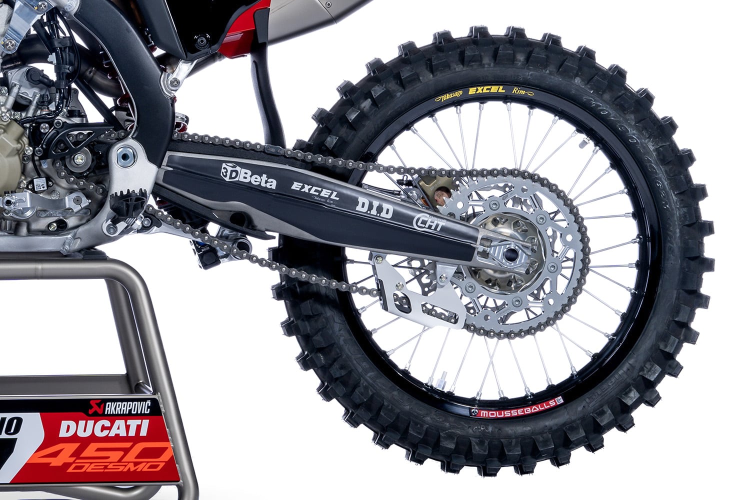 La Desmo450 MX, es el nombre del nuevo modelo, y fue presentada en el escenario de PalaCampiglio con los colores que lucirá en competición este año – en el Campeonato Italiano de Motocross Pro – Prestige MX1 – por el departamento de I+D de Ducati Corse – Factory MX. El equipo será dirigido por Corrado y Marco Maddii.