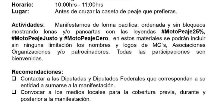Motociclismo 3 octubre 2025 por admin · Published 3 octubre 2025 #MotoPeaje25% todos por un sólo propósito