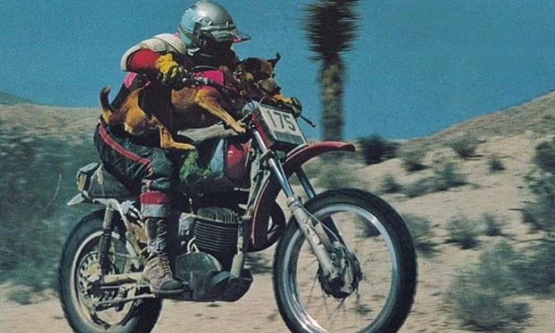 John McCown, de profesión carnicero y apasionado motociclista, no solo se destacaba por su habilidad sobre dos ruedas, sino por su estilo inconfundible: corría acompañado de su perro mestizo, Kookie, quien viajaba firme sobre el tanque de la moto, justo frente al manillar. Con una alfombra adaptada para darle estabilidad, Kookie se convirtió en copiloto y símbolo de las competencias off-road de los años 70.