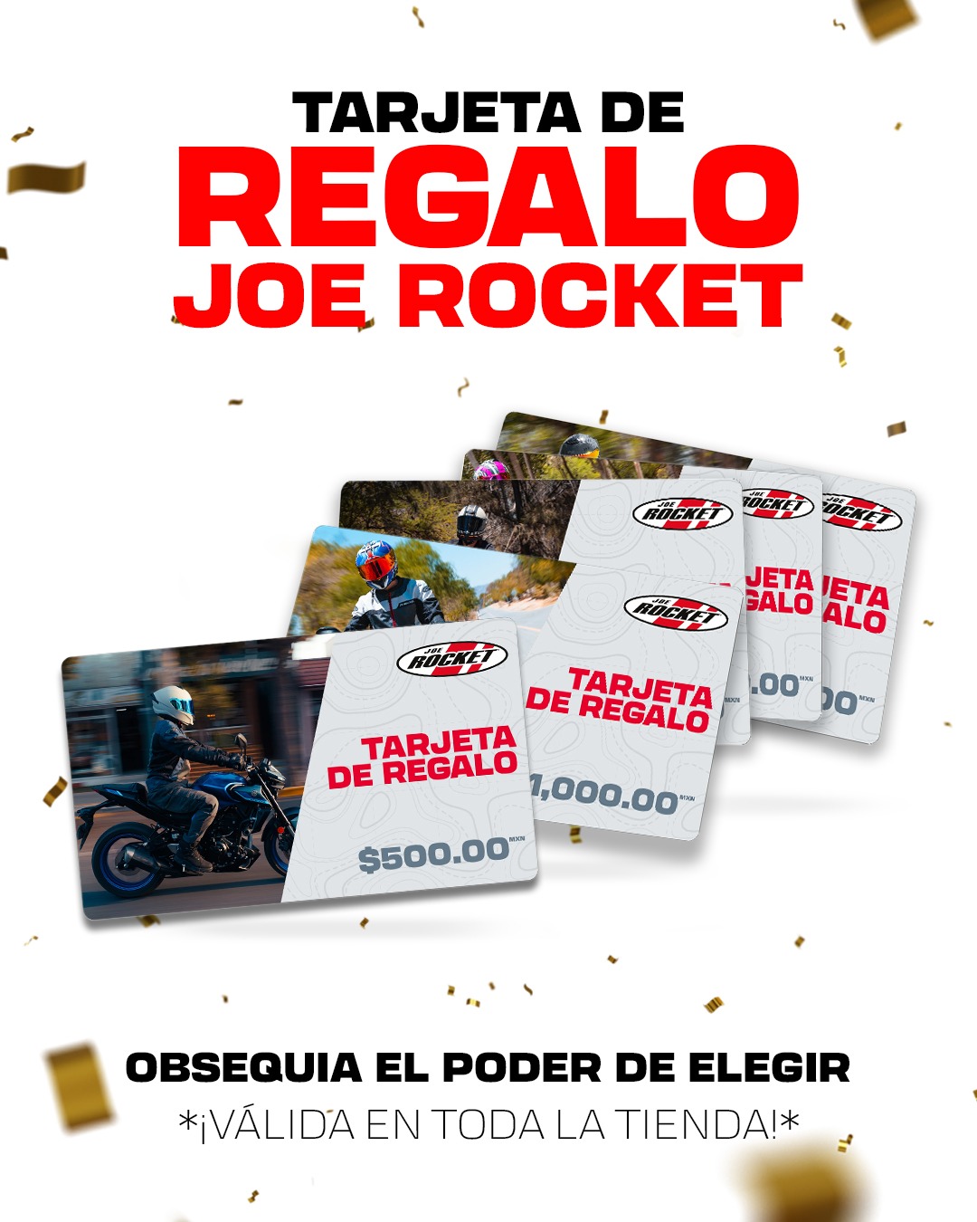 La Tarjeta de Regalo está disponible en la tienda oficial de Joe Rocket México.